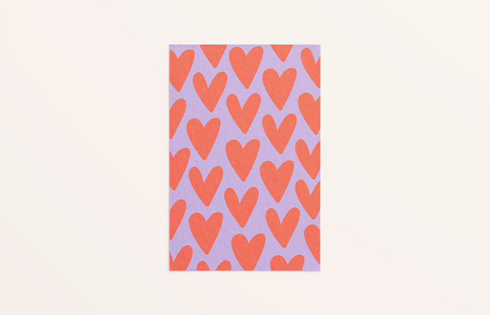 Een kaart met een hartjesprint. De illustratie is door ons vormgegeven en gedrukt op mooi dik duurzaam papier.