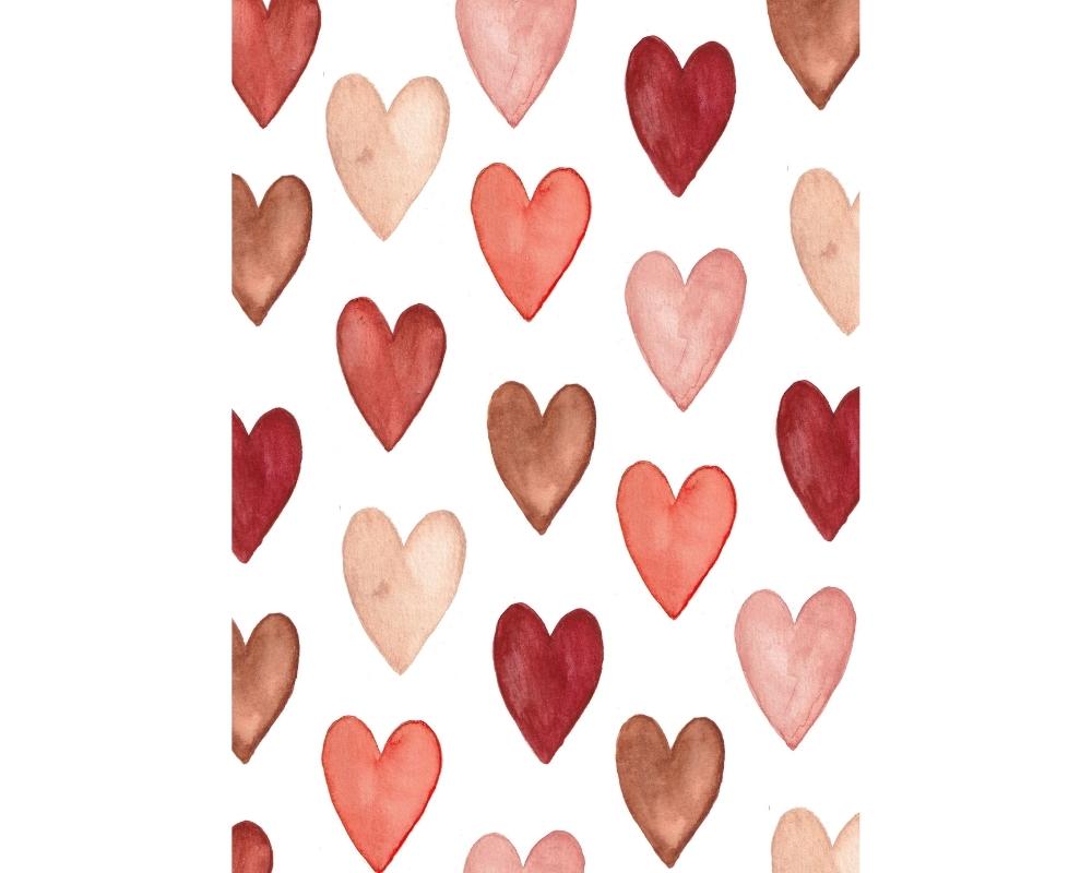 Kaart met hartjesprint, handgeschilderd met waterverf.