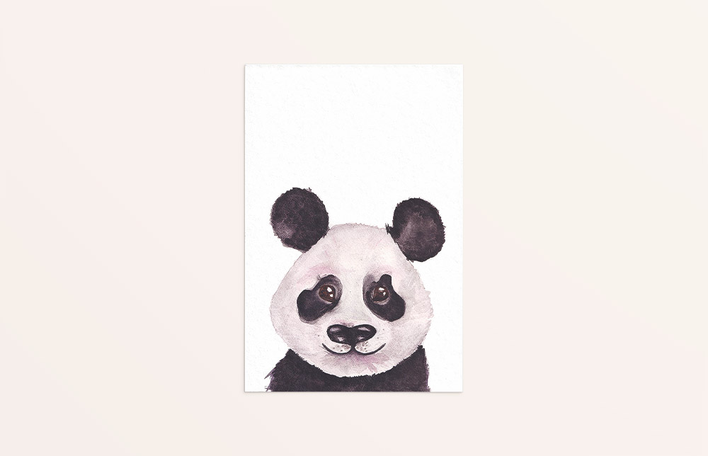 Een kaart van een schattige panda. De kaart is handgeschilderd in aquarel. Leuk om te sturen, als kleinigheidje of bij een cadeautje.