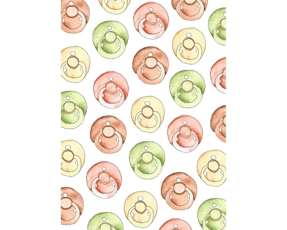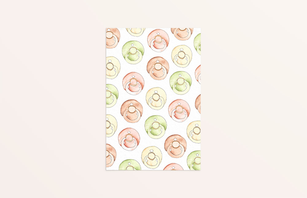 Kaart met een print van spenen. Perfect voor iemand die in verwachting is, bij een kraamcadeautje of om dit heugelijke nieuws aan te kondigen!